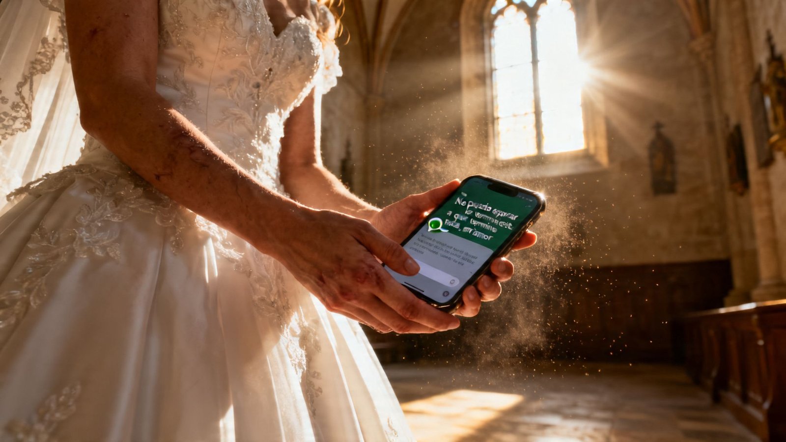 «¿Quieres saber por qué no puedo casarme?», pregunté a la congregación, levantando el teléfono para que todos pudieran ver la pantalla. La imagen era pequeña, pero el mensaje de texto era visible para quienes estaban cerca. «Porque este hombre, el hombre con el que iba a casarme hoy, me ha estado engañando.»