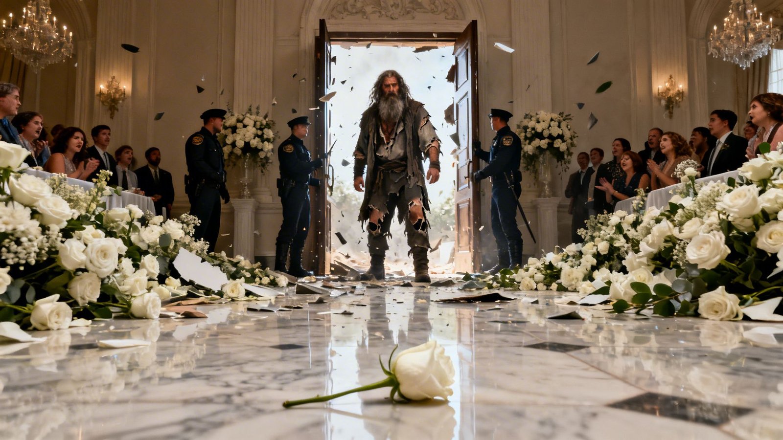 Los invitados comenzaron a murmurar, algunos pidiendo que sacaran al hombre, otros susurrando sobre la tragedia.