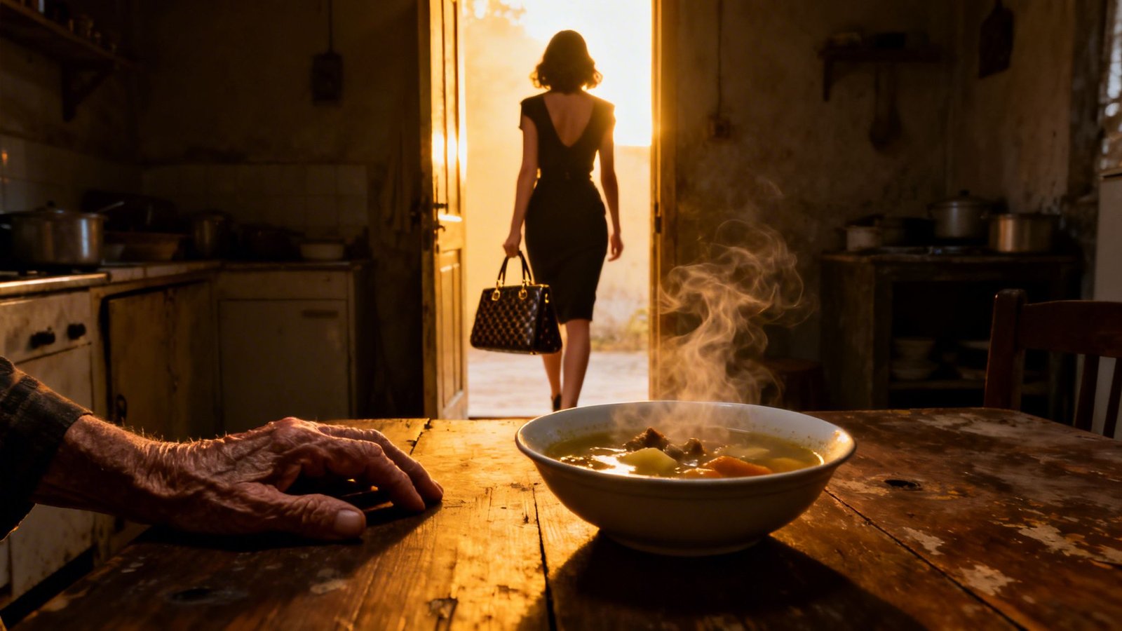 El sancocho humeaba en la mesa, un aroma olvidado, un amor despreciado.